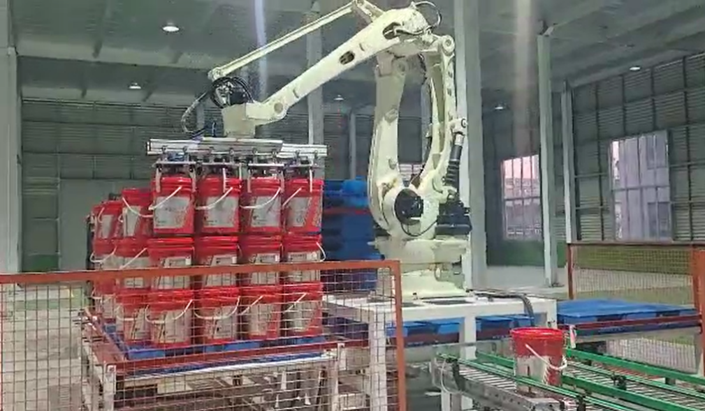码垛机器人,是机械与计算机程序有机结合的产物,为现代生产提供了更高的生产效率。码垛机器人在码垛行业有着相当广泛的应用。码垛机器人很大程度上节省了劳动力、节省空间,运作灵活精准、快速高效、稳定性高,作业效率高,并且操作简单灵活,结构耐用,占地面积小,在工作范围以内可以实现产品任意位置的抓取和堆放,多功能应用。其工作效率可达800-1200次/小时,能方便的集成在任何生产线中,并很好的处理纸箱,塑箱、瓶类、袋装、桶装等物品。